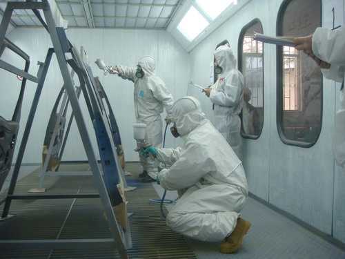 車(chē)身涂裝技能大賽面漆噴涂比賽現(xiàn)場(chǎng)