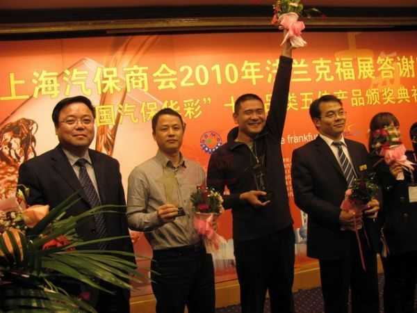 我司無塵干磨系統(tǒng)榮獲“中國汽保華彩”五佳產(chǎn)品稱號 2010年“中國汽保華彩”十大品類五佳產(chǎn)品頒獎典禮上,珠海市龍神有限公司的自研產(chǎn)品無塵干磨系統(tǒng)榮獲“五佳產(chǎn)品”稱號,這給龍神公司畫上了閃亮亮的一筆。 頒獎主持人致辭 我司蘇總上臺領獎(左二) 獲獎瞬間的喜悅 2010-12-14 10111