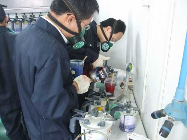 老師們正在進行調(diào)漆
